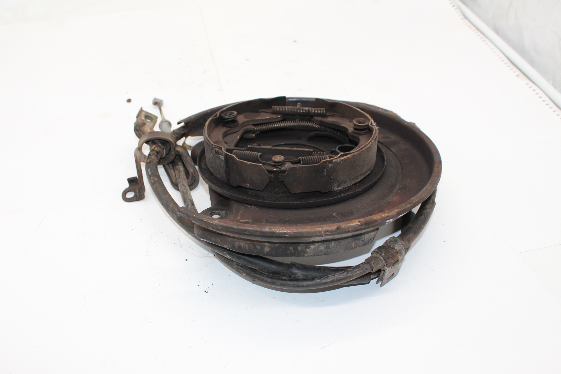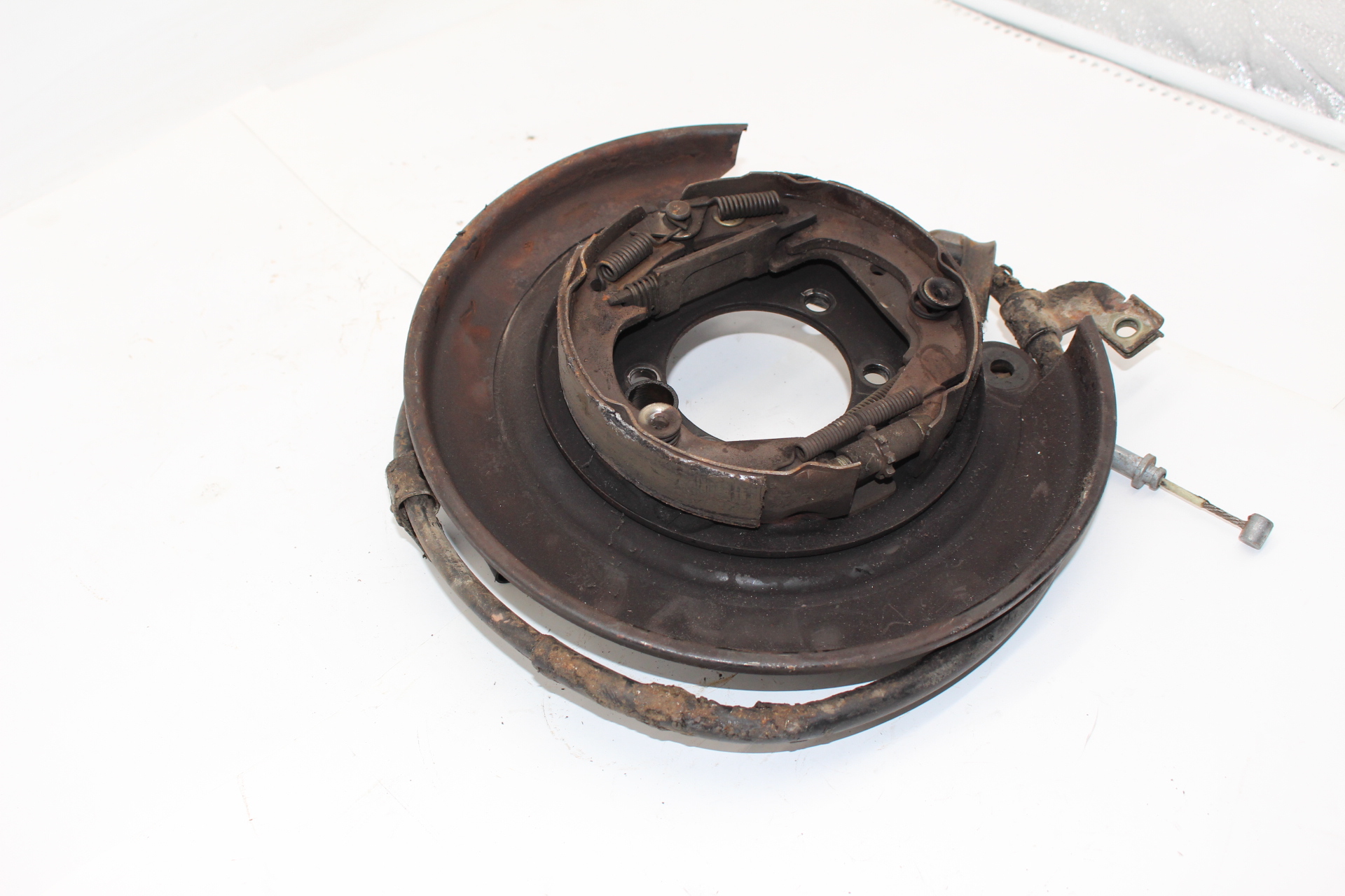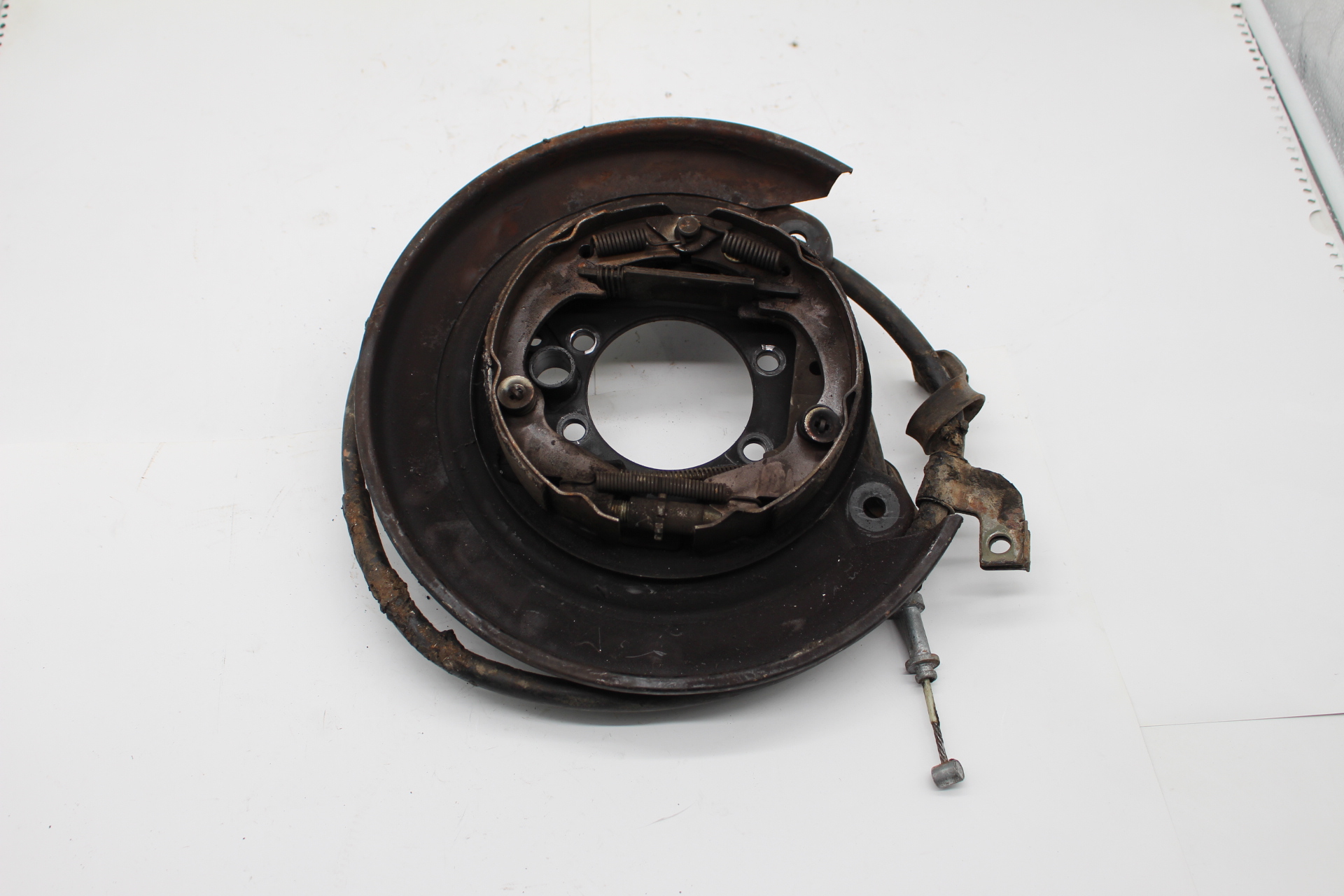 Gebrauchte Ankerblech mit Feststellbremse hinten links. Für Fahrzeuge mit Scheibenbremse auf der Hinterachse.