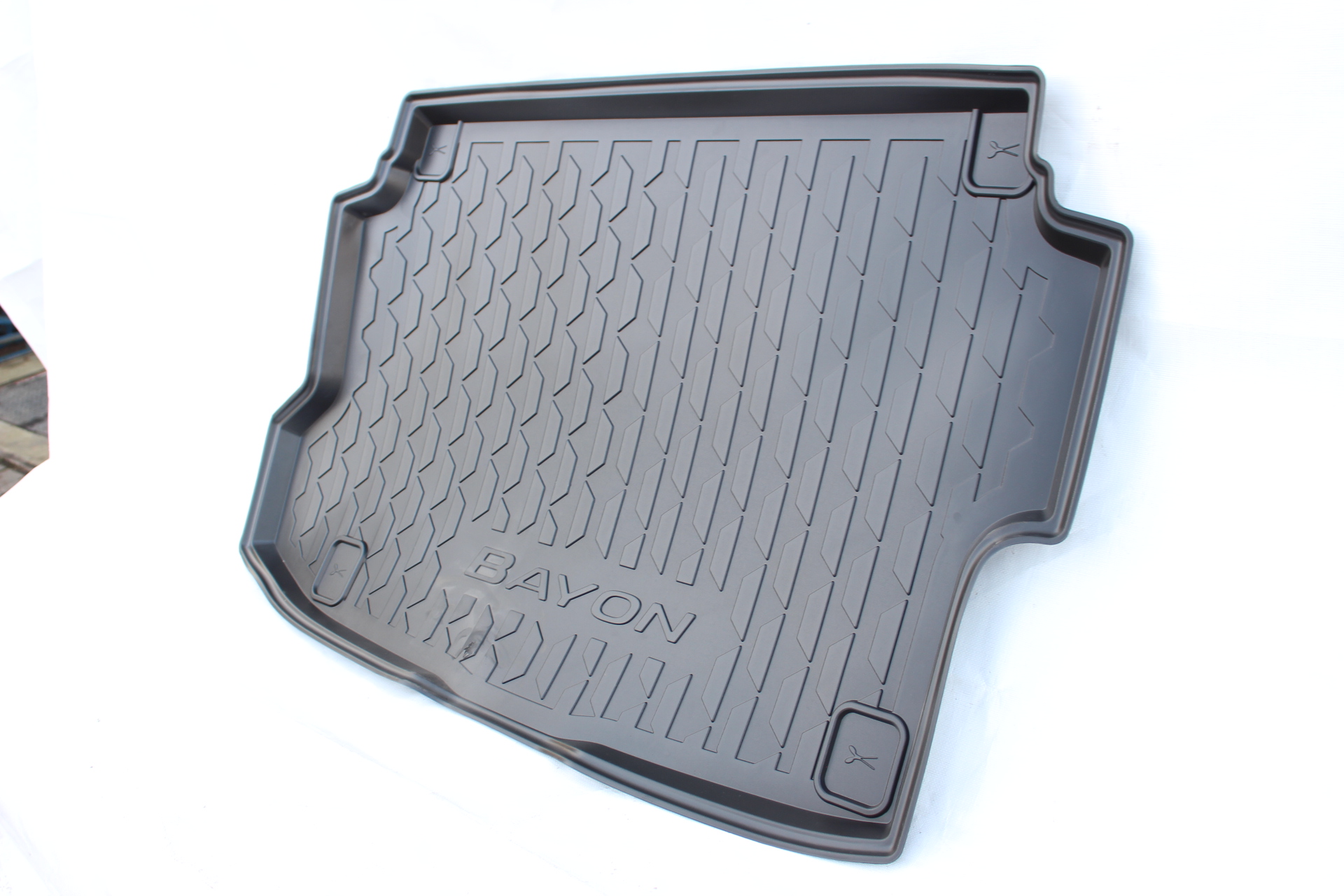 Passgenaue Kofferraumwanne mit Bayon Logo zum Schutz vor Schmutz und Feuchtigkeit. Die rutschfeste und wasserabweisende Oberfläche sorgt für sicheren Halt der Ladung. Hochstehende Kanten schützen Teppichboden und Seitenverkleidung zuverlässig. Leicht zu reinigen und ideal für den täglichen Einsatz.