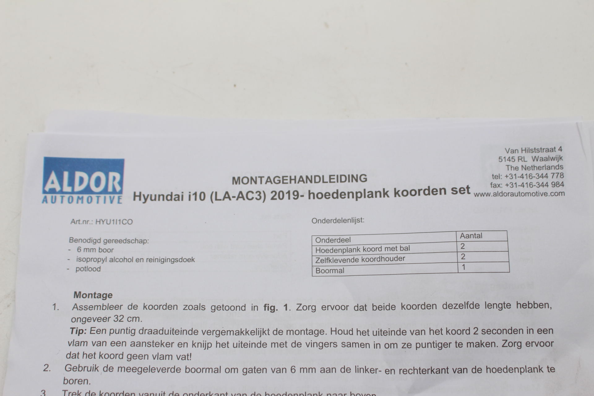 - Einfache Montage (eine Bohrung in der Hutablage erforderlich)