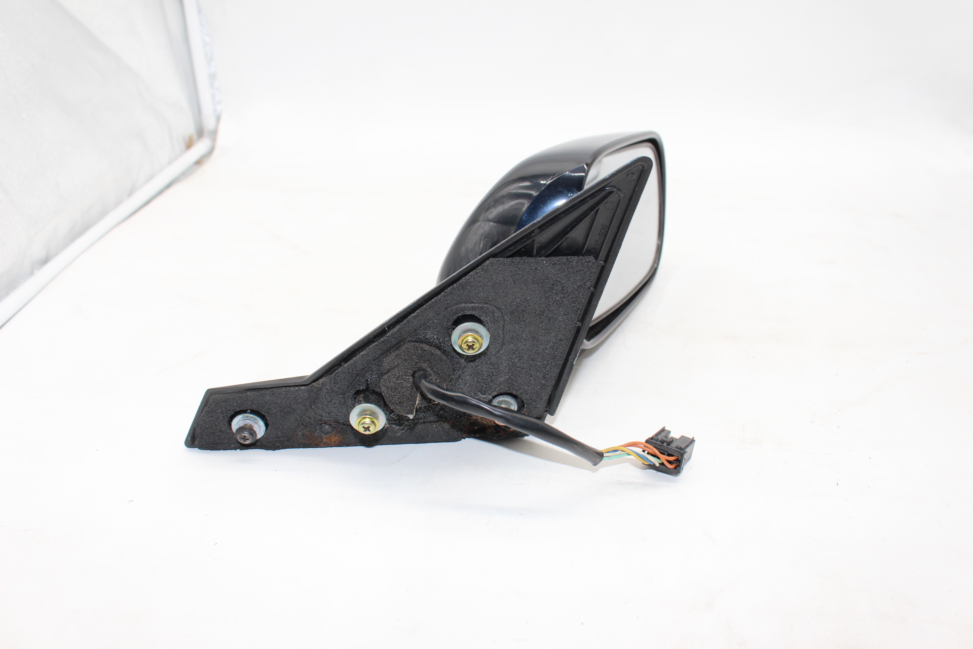 Der Spiegel befindet sich in gebrauchtem, funktionsfähigem Zustand mit leichten, altersüblichen Gebrauchsspuren. Gehäuse in schwarz, Glas intakt, Befestigungspunkte unbeschädigt.