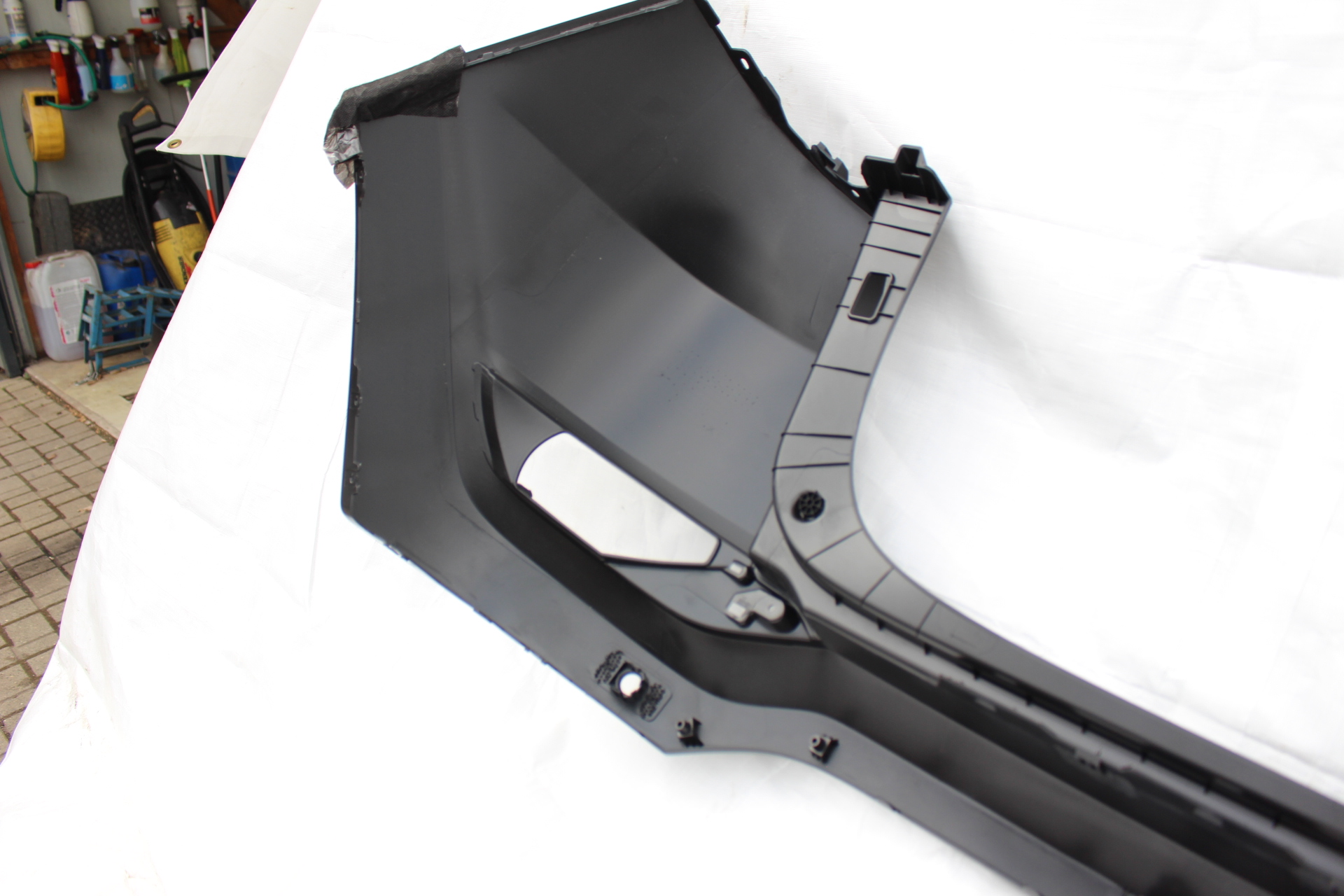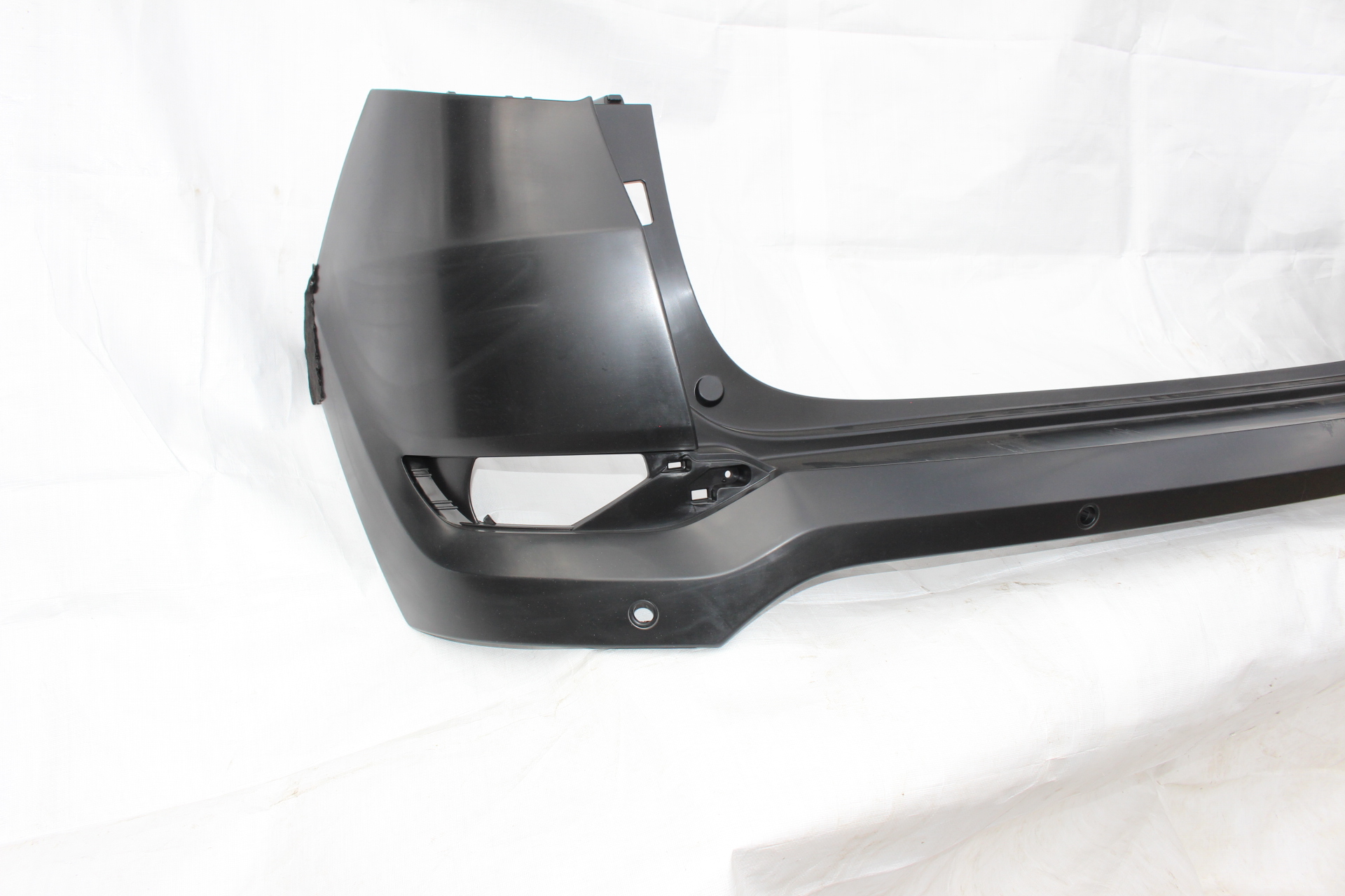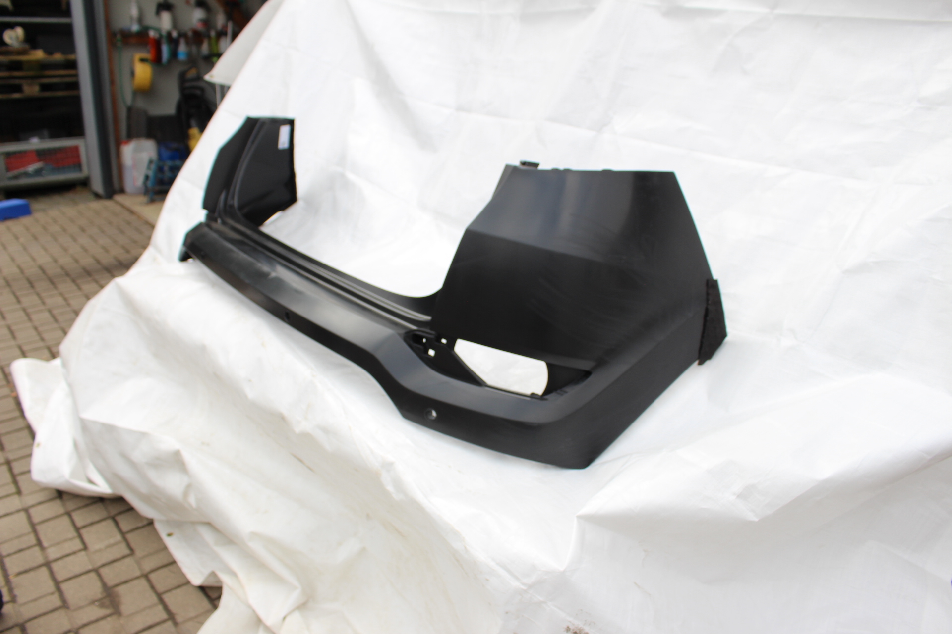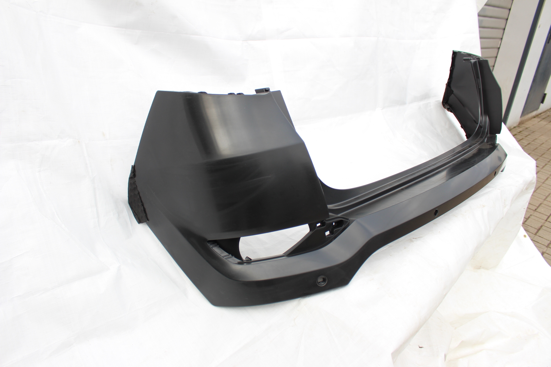 Stoßstange in passgenauer Ausführung für den Heckbereich. Geeignet für Fahrzeuge mit Einparkhilfe und vorbereitet mit Halterungen für Parksensoren. Glatte Oberfläche zur individuellen Lackierung.