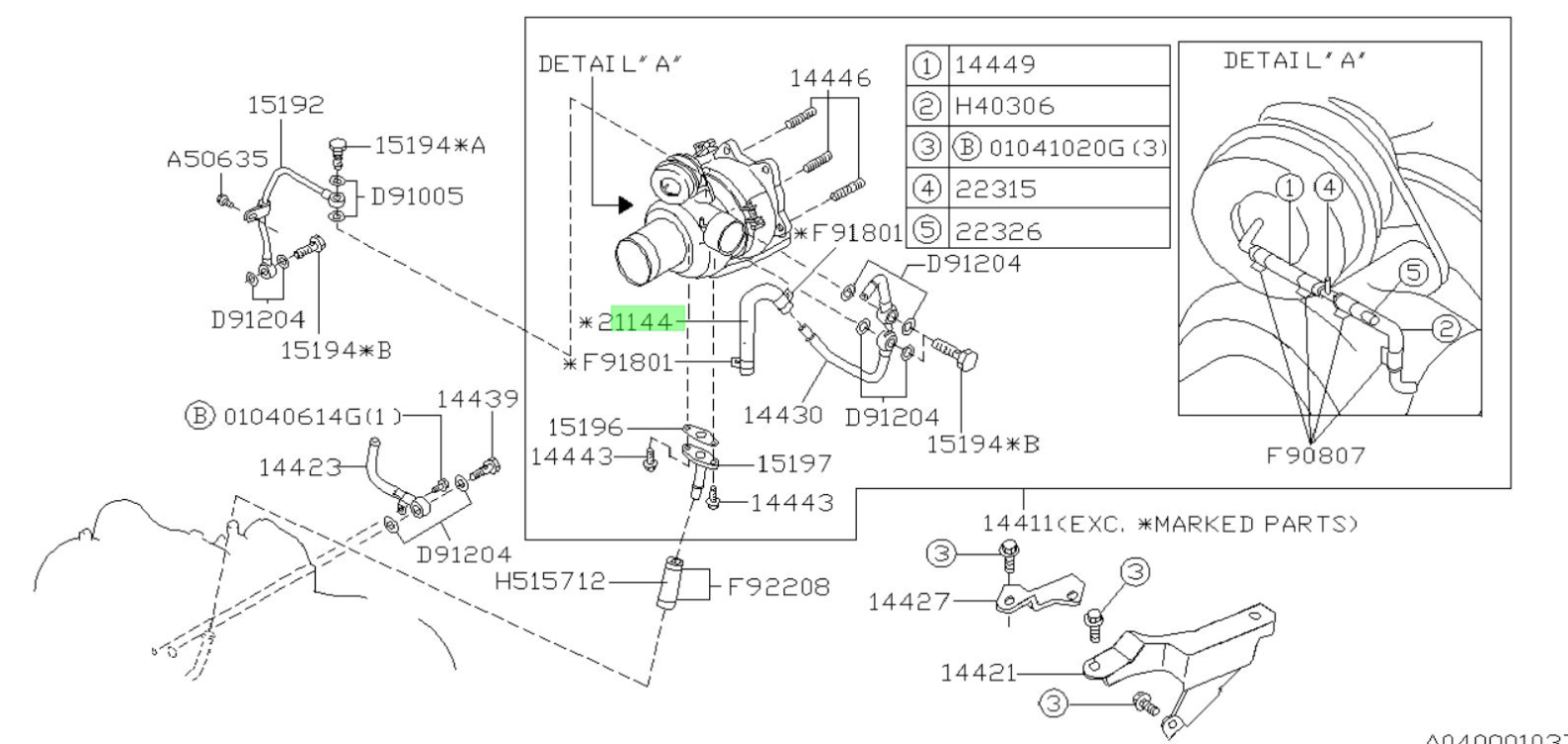 Wasserleitung Turbolader – Subaru Impreza GT 1992–2000, Impreza STI 2001–2002, Forester 1998–2003 – 21144AA020
