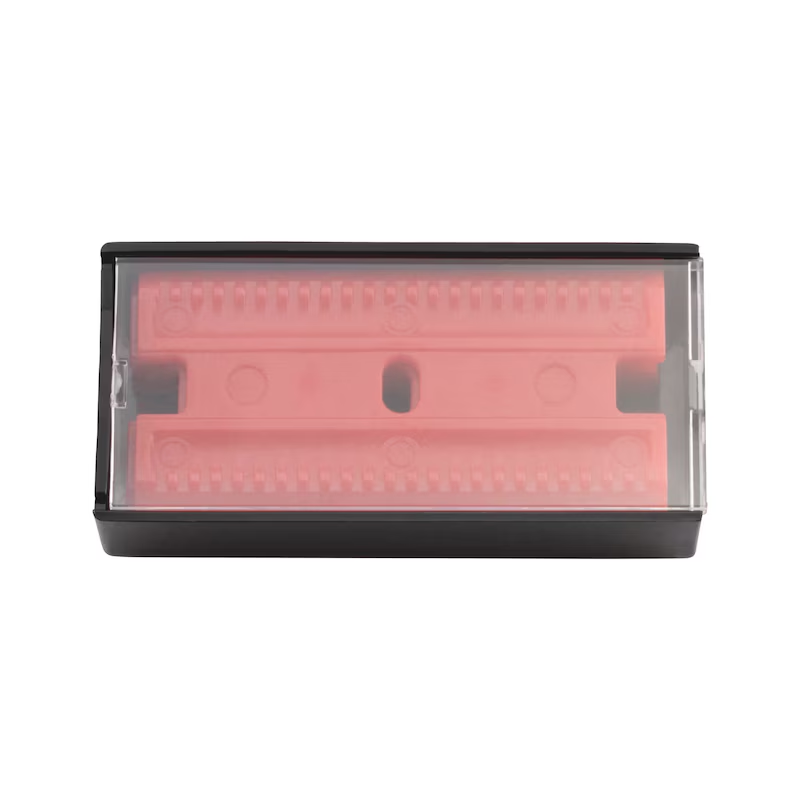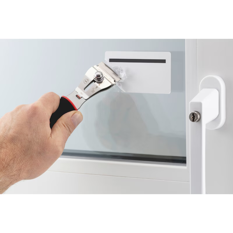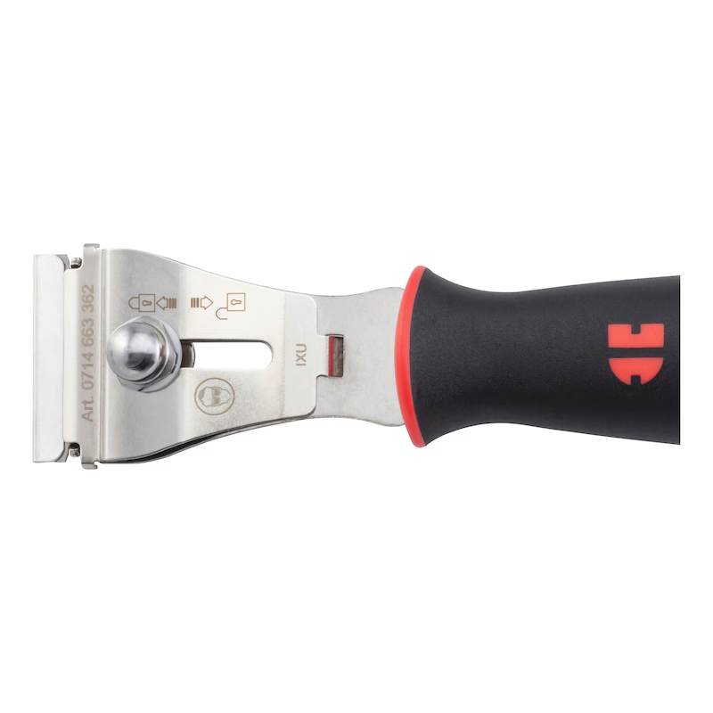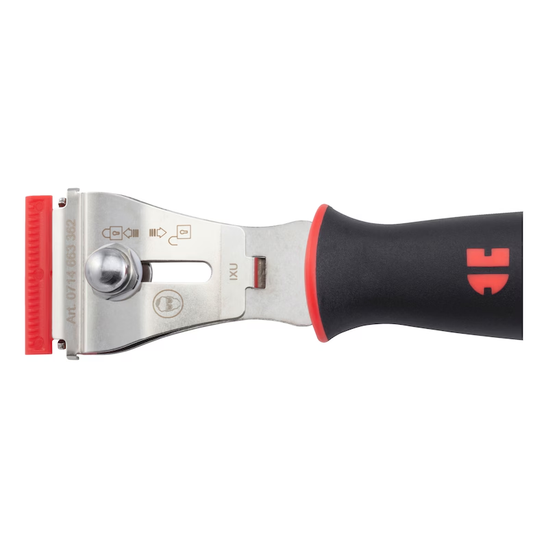 Durch die Kombination aus Metall- und Kunststoffklingen eignet sich der Schaber für empfindliche wie auch harte Oberflächen.