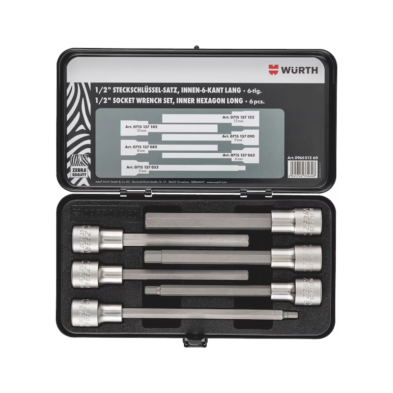 Produktinformationen "Würth Steckschlüsselsatz 1/2 Zoll Innensechskant lang 6 teilig Metallkassette ZEBRA Profi"