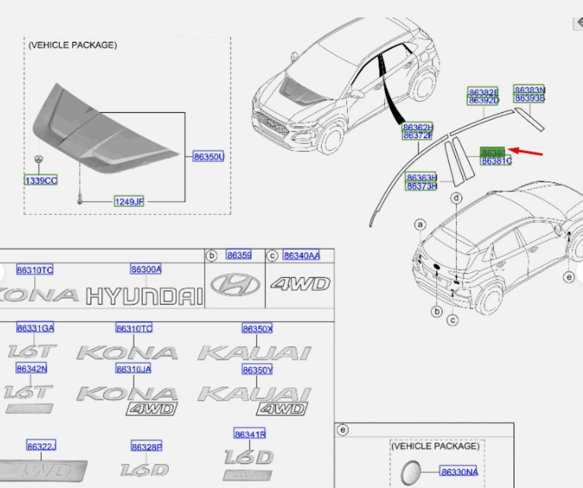 Zierfolie Türrahmen vorne rechts Hyundai Kona – 86391J9000